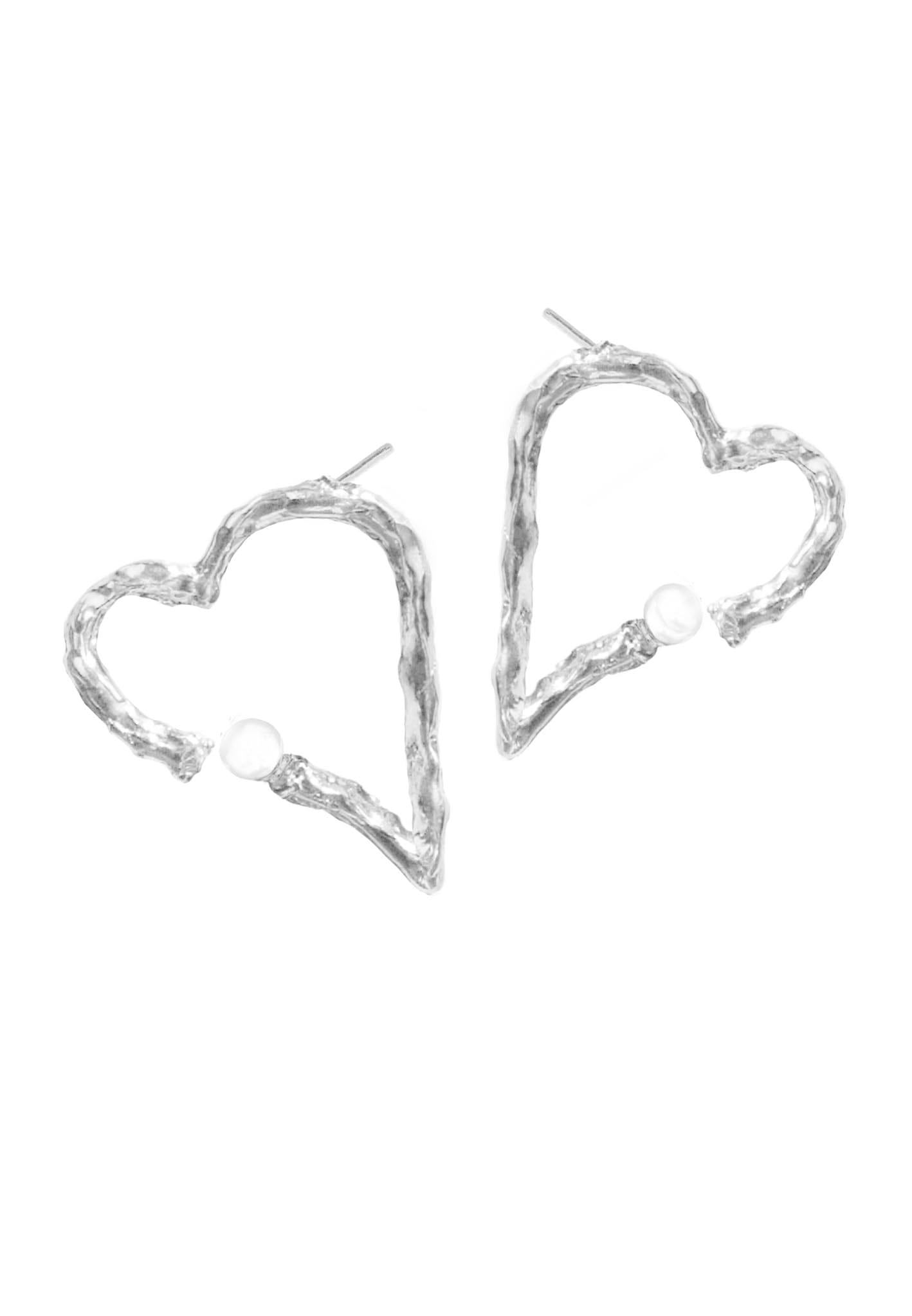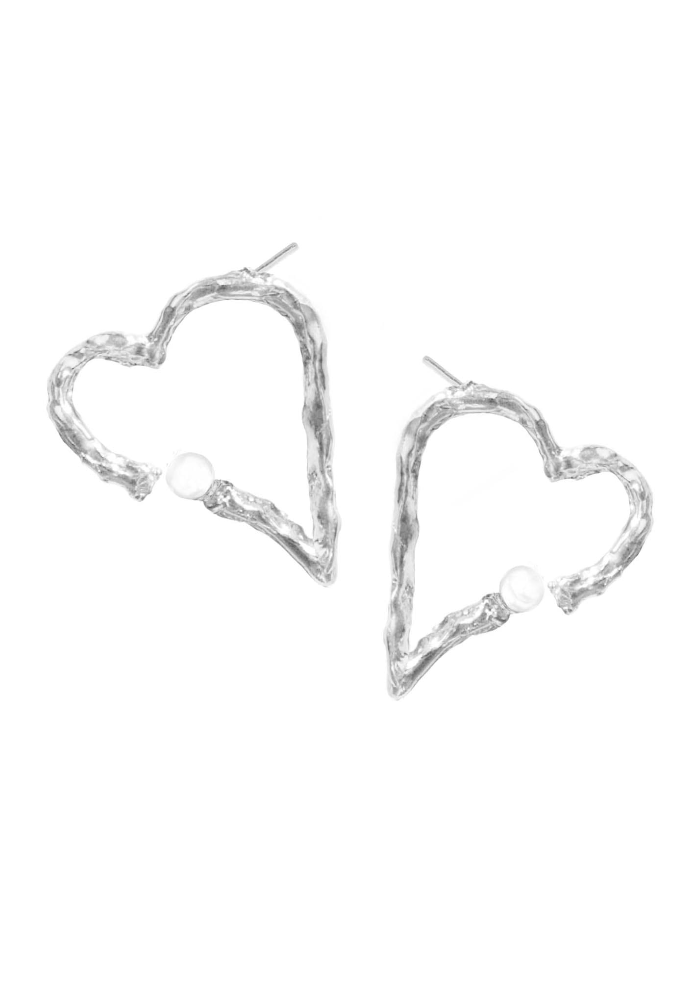 Kolczyk typu sztyft w kształcie serca, ozdobione perłą hodowlaną. Wykonane ze srebra próby 925.Nierówna powierzchnia przyjemnie załamuje światło, można je nosić pojedynczo, albo w parze. Lewy i prawy kolczyk nieznacznie różnią się miedzy sobą. Wysokość kolczyka około 4 cm, szerokość 2,5 cm. Seca są formą otwartą z jednej strony zakończoną hodowlaną perą.